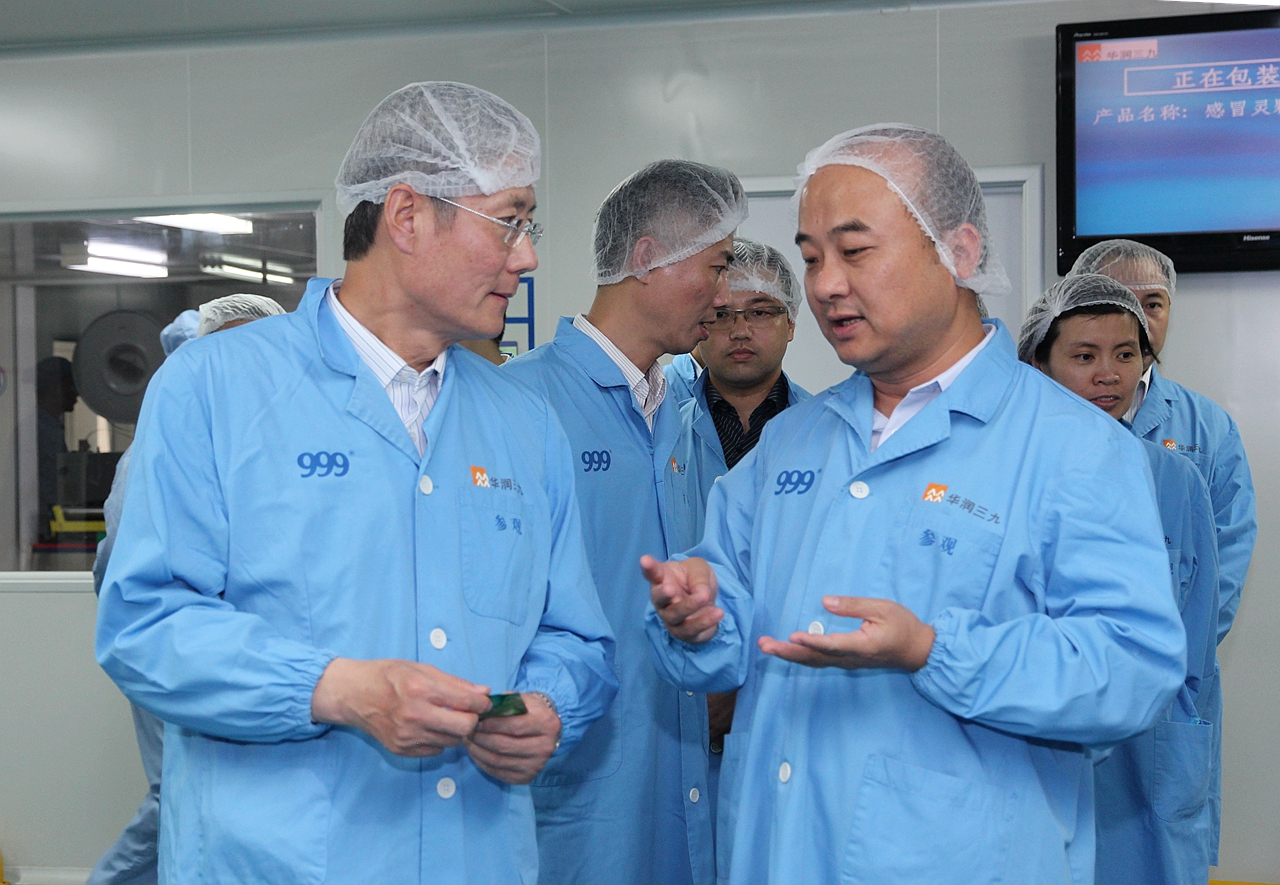 在产品展示区域,傅育宁董事长仔细察看三九胃泰、999感冒灵、999皮炎平、999正天丸、999强力枇杷露、气滞胃痛颗粒、999参附注射液、999参麦注射液、舒血宁注射液、华蟾素、999新泰林、999中药配方颗粒等多个核心产品,询问了解产品的市场销售、质量等情况。他拿起一盒“三九胃泰”,对宋清总裁说:“我服用过这个产品,效果很好!999好记,品牌影响力好。”