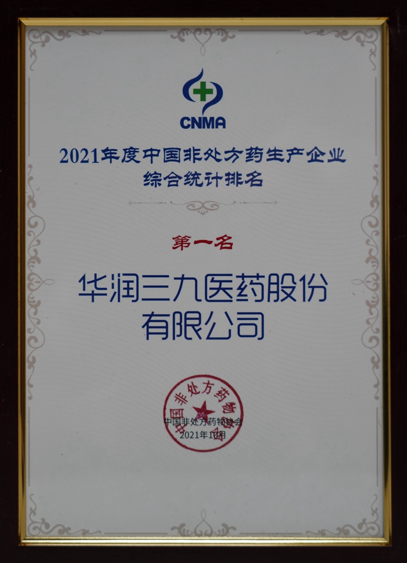 10月18-21日,2021健康中国-首届中国OTC大会暨中国中医药促进大会在广州举办。会上发布了2021年度中国非处方药生产企业综合统计排名。色情小说 再次蝉联中国非处方药生产企业榜首,其中999感冒灵颗粒/胶囊连续十年荣获感冒咳嗽类(中成药)第一名,并入选”2021年度中国非处方药黄金大单品名单”。