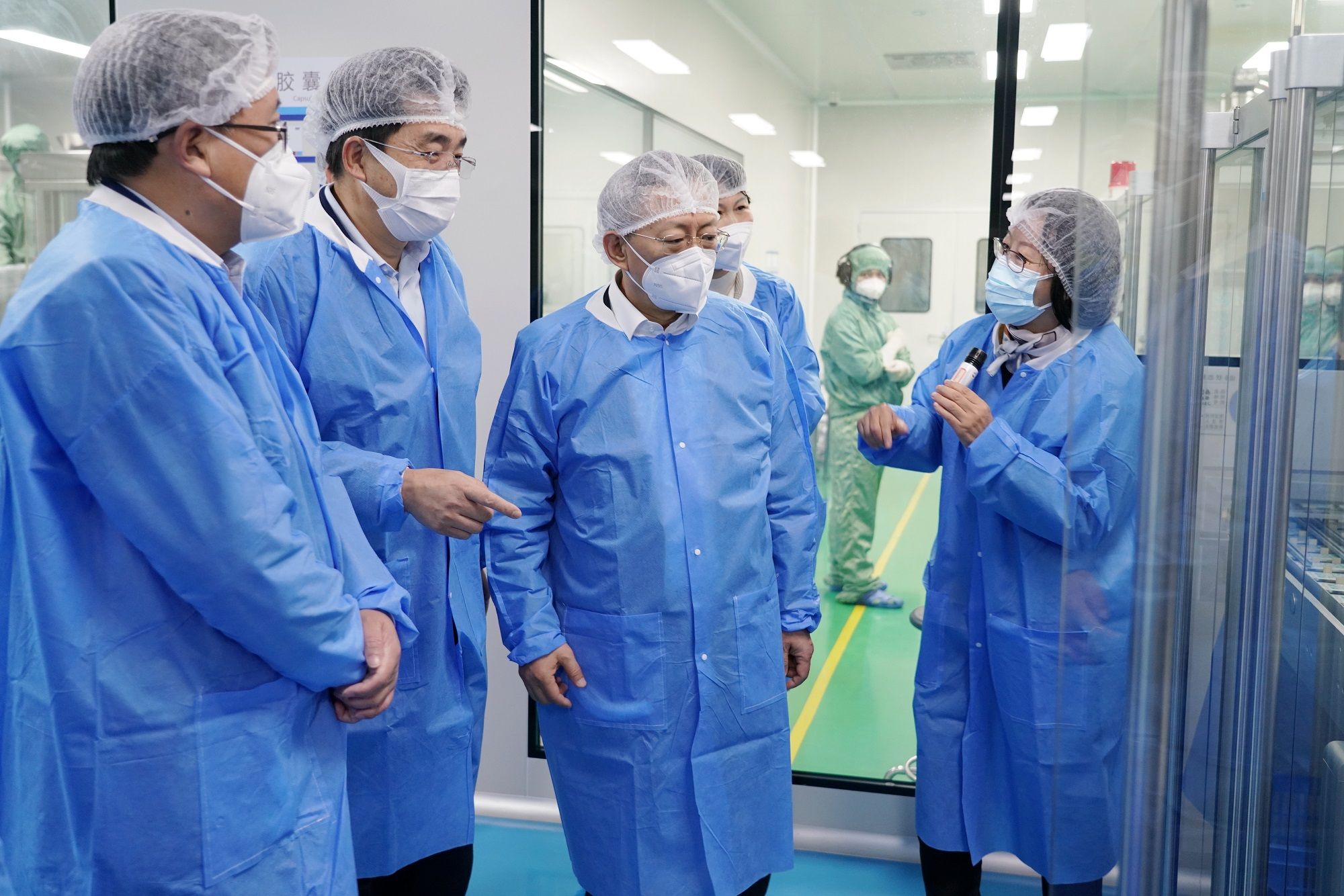 12月23日上午,国务院国资委副主任袁野带队到色情小说 调研华润抗疫保供工作,实地调研了抗疫产品生产车间,听取了王崔军总经理等集团相关领导就华润整体保产保供保医工作的专项汇报。