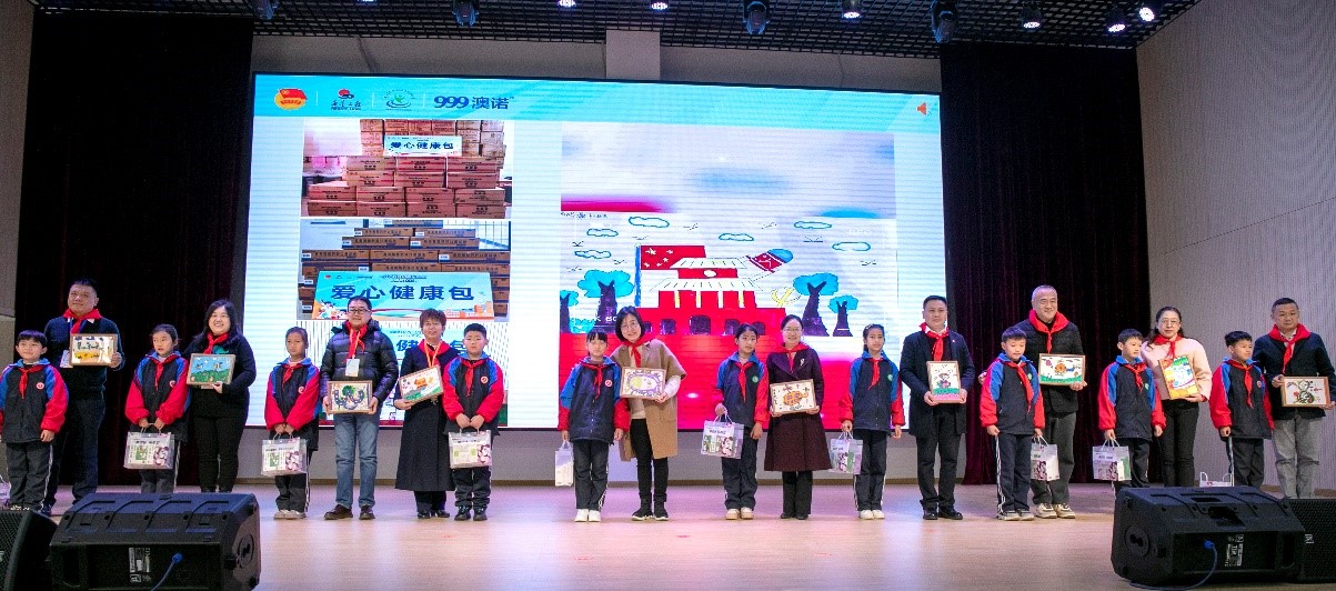 捐赠仪式上,999澳诺还向韶山华润学校捐赠了一批价值20万元的爱心礼包。孩子们则用手工精心制作礼物表达内心的感谢。