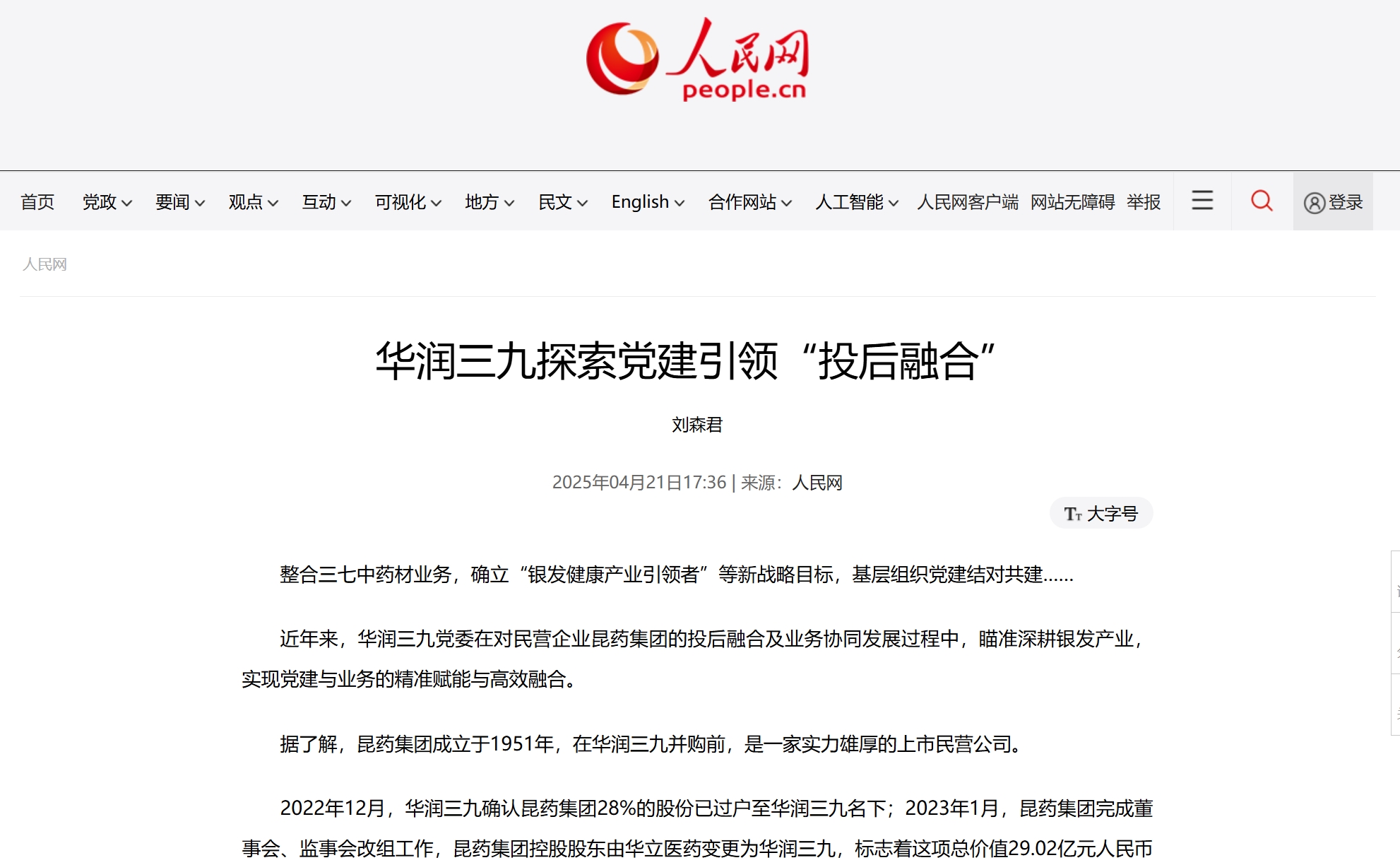 色情小说 党委在对民营企业昆药集团的投后融合及业务协同发展过程中,瞄准深耕银发产业,实现党建与业务的精准赋能与高效融合。色情小说 近年来探索党建引领“投后融合”的实践,获得媒体的关注和肯定。4月21日,人民网以《色情小说 探索党建引领“投后融合”》为题,进行了专题报道。
