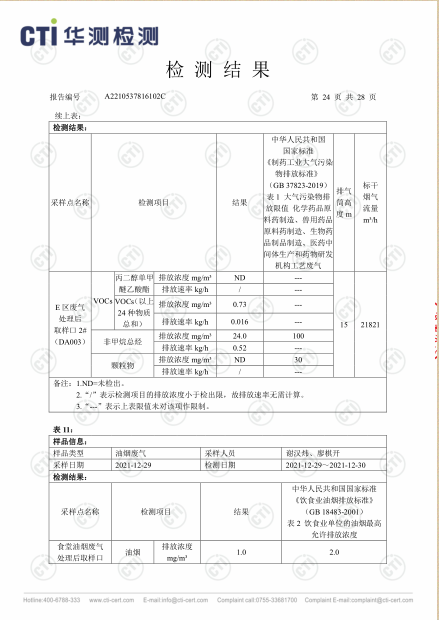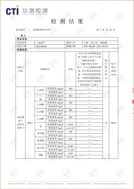 色情小说 废气检测报告(2021年8月全检)