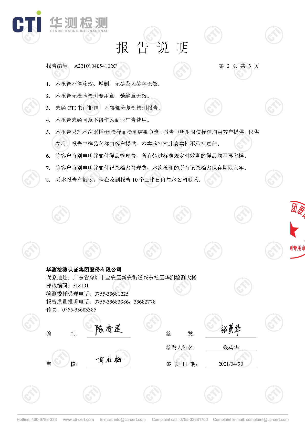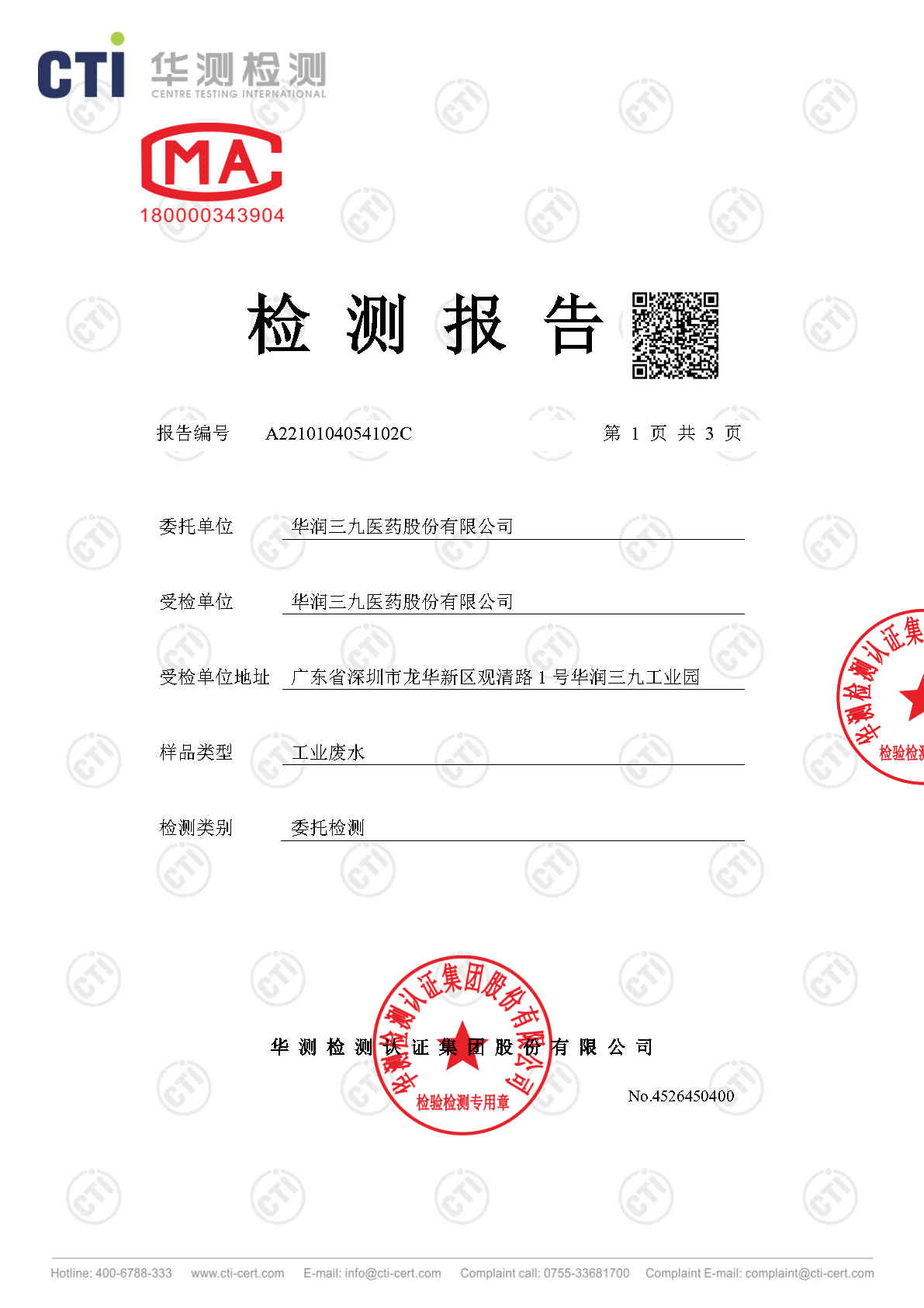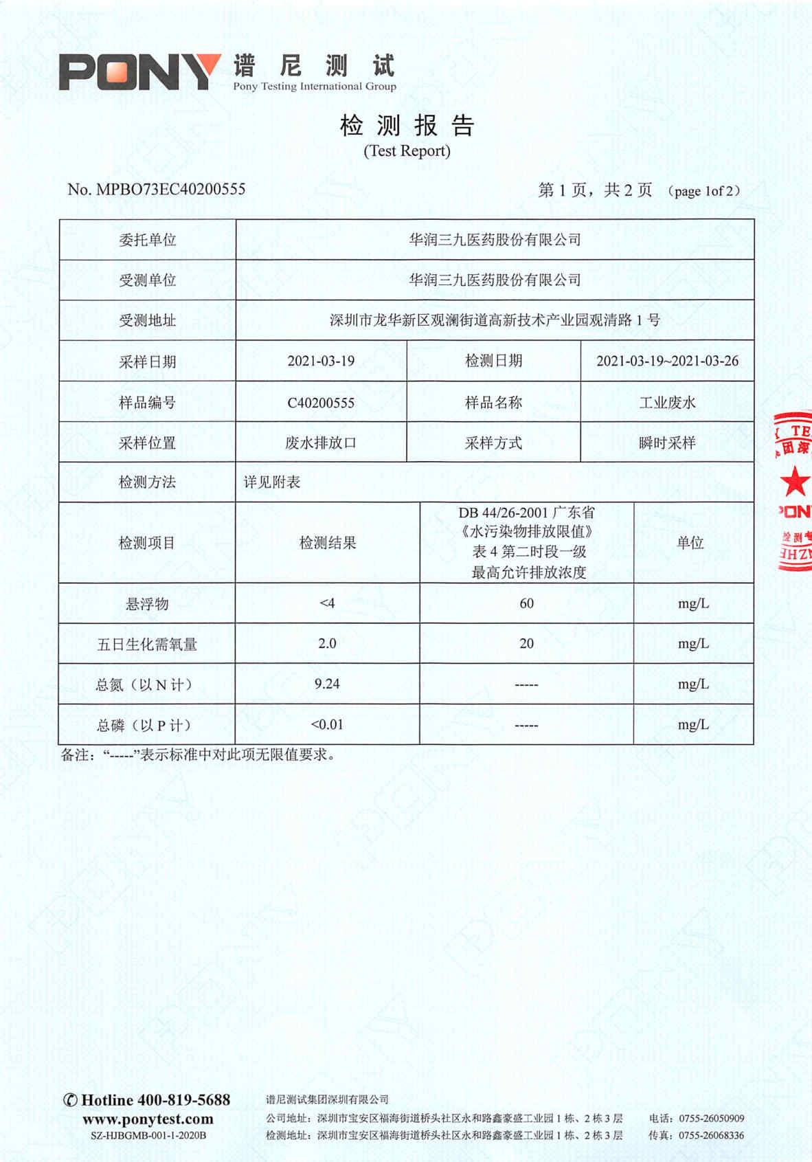 色情小说 废水检测报告(2021年3月)