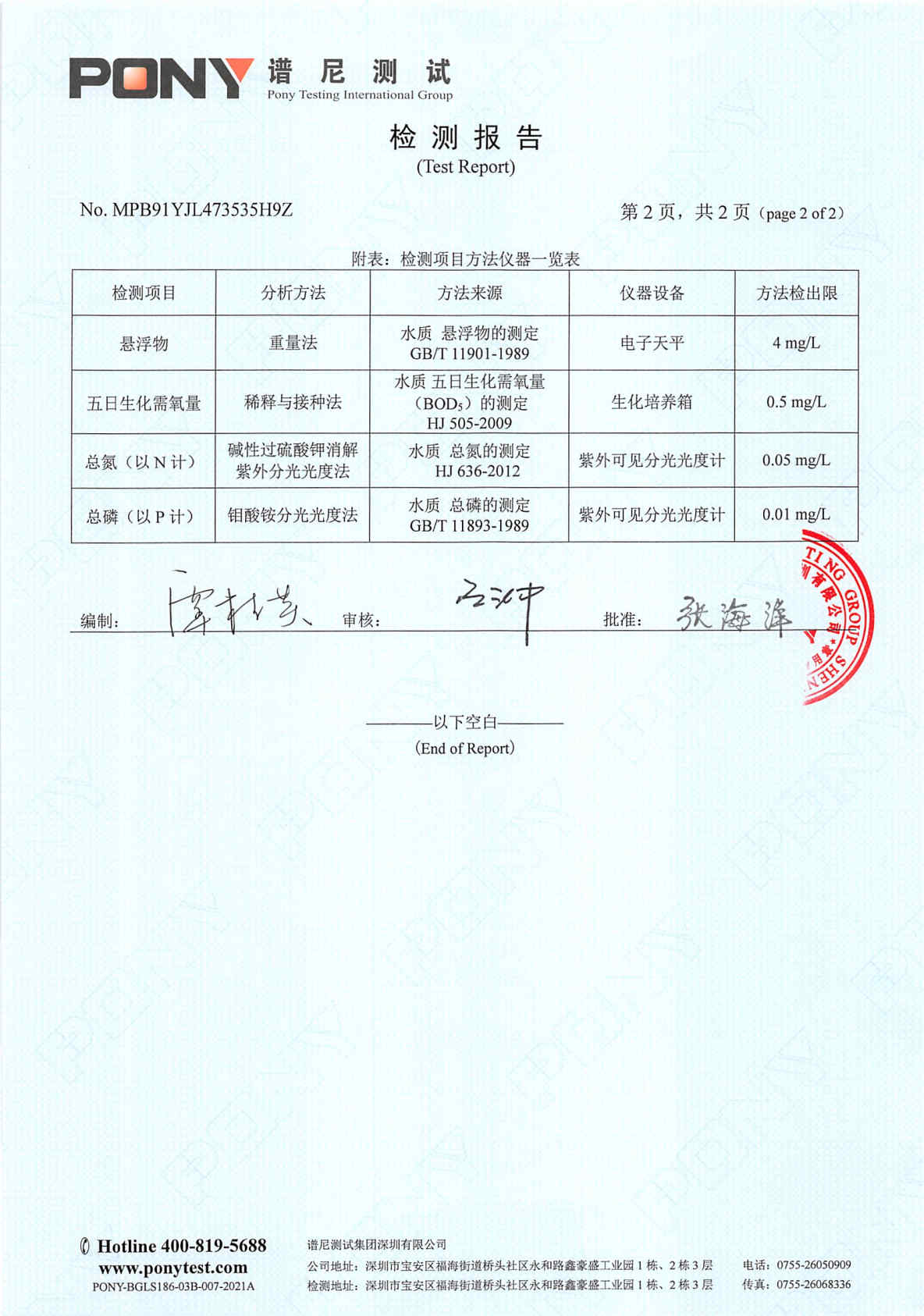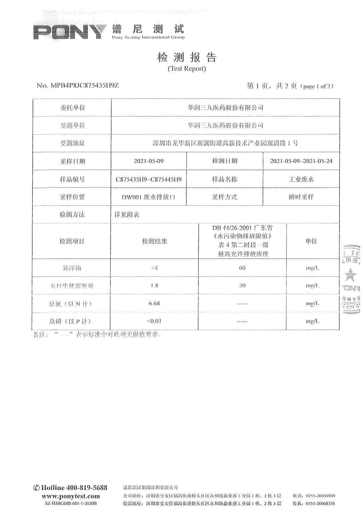 色情小说 废水检测报告(2021年5月)