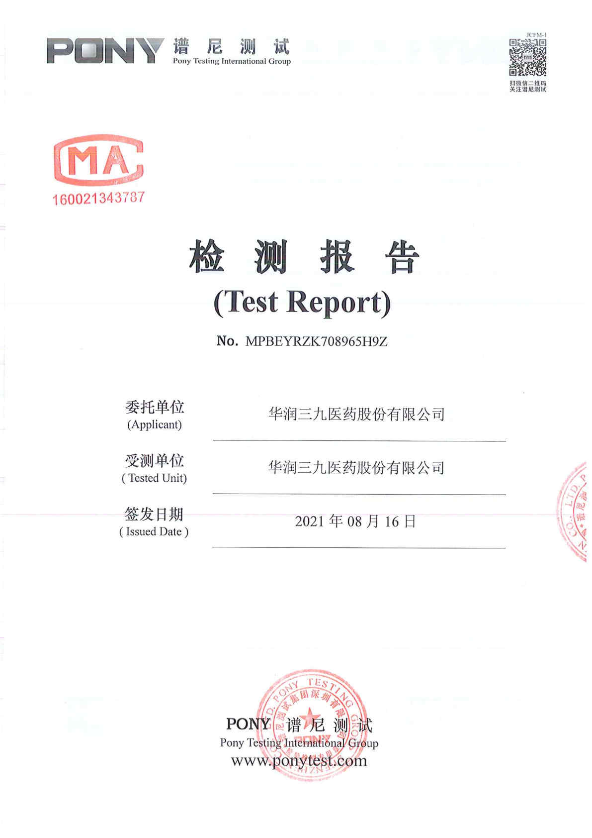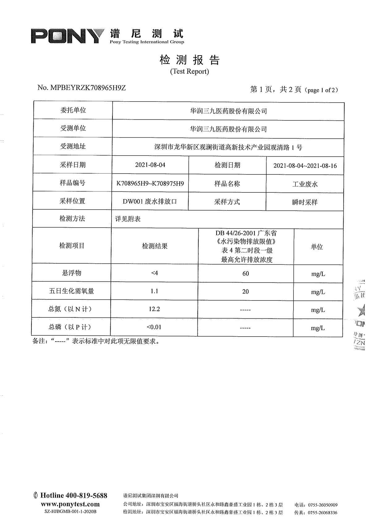 色情小说 废水检测报告(2021年8月)
