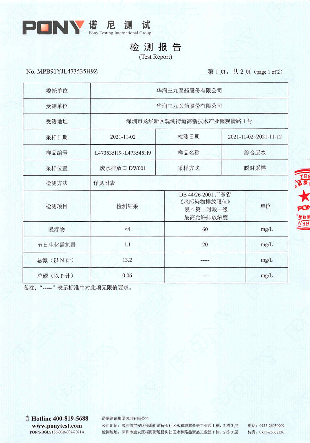 色情小说 废水检测报告(2021年11月)