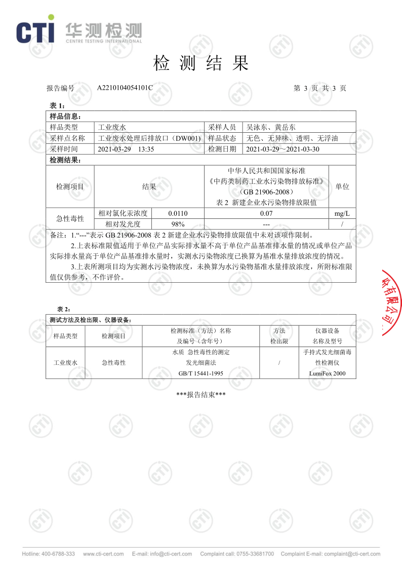 色情小说 废水检测报告(2021年3月毒性)