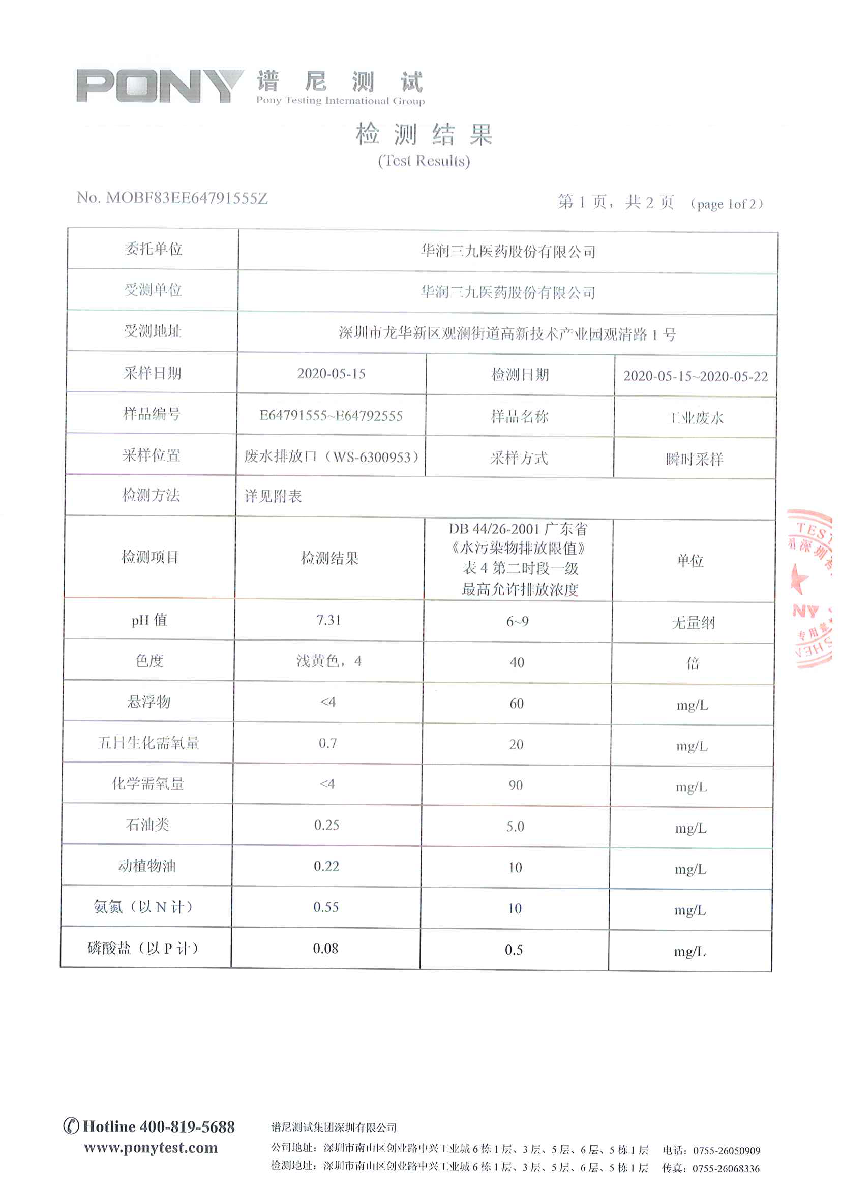 我单位共有废水排放口 1 个,位于厂区西南角污水在线监测站旁。