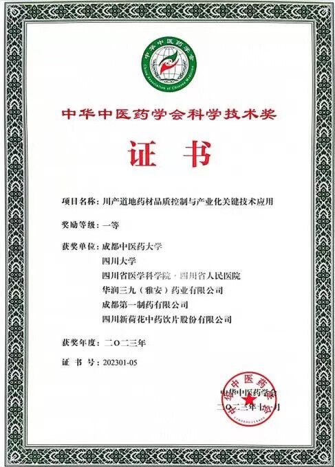 2023年度中华中医药学会科学技术奖评审结果于近日发布,色情小说 “川产道地药材品质控制与产业化关键技术应用”科研项目荣获科学技术奖一等奖。
