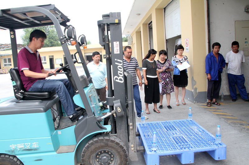 考验叉车驾驶员平稳地把物品运输到指定地点。