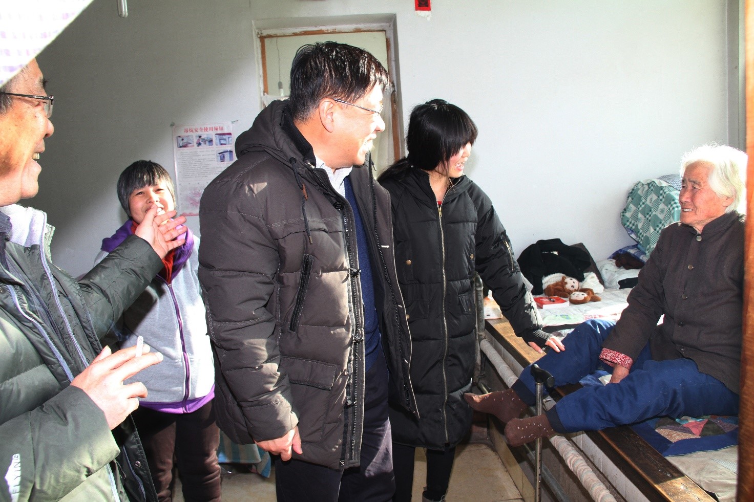 冯毅主席一行首先来到延庆区广积屯村,走进华润高科员工聂玉荣的家,冯毅主席亲切握着聂玉荣的手说:今天我代表华润医药在春节到来前,看望您们全家,祝全家人健康幸福。聂玉荣及患病的爱人深表感谢领导的关怀和照顾。冯毅主席看到在炕上的80多岁老婆婆,关切的询问老人家身体状况,当得知家中有两位病人,女儿还在上学,全家仅靠聂玉荣一人收入生活时,冯总鼓励聂玉荣要坚强的面对生活压力,照顾好家中病人和女儿,他叮嘱高科工会的同志要多关注困难员工的生活,多帮助他们解决后顾之忧。随后,冯毅主席又来到华润高科双职工贺玉莲、张爱利家中,看望重病的贺玉莲,了解到贺玉莲的病情后,冯毅主席鼓励她要有信心要坚强,积极治疗,早日康复。华润高科总经理助理方玲、工会主席朱琦、后勤部部长王建新随同慰问。