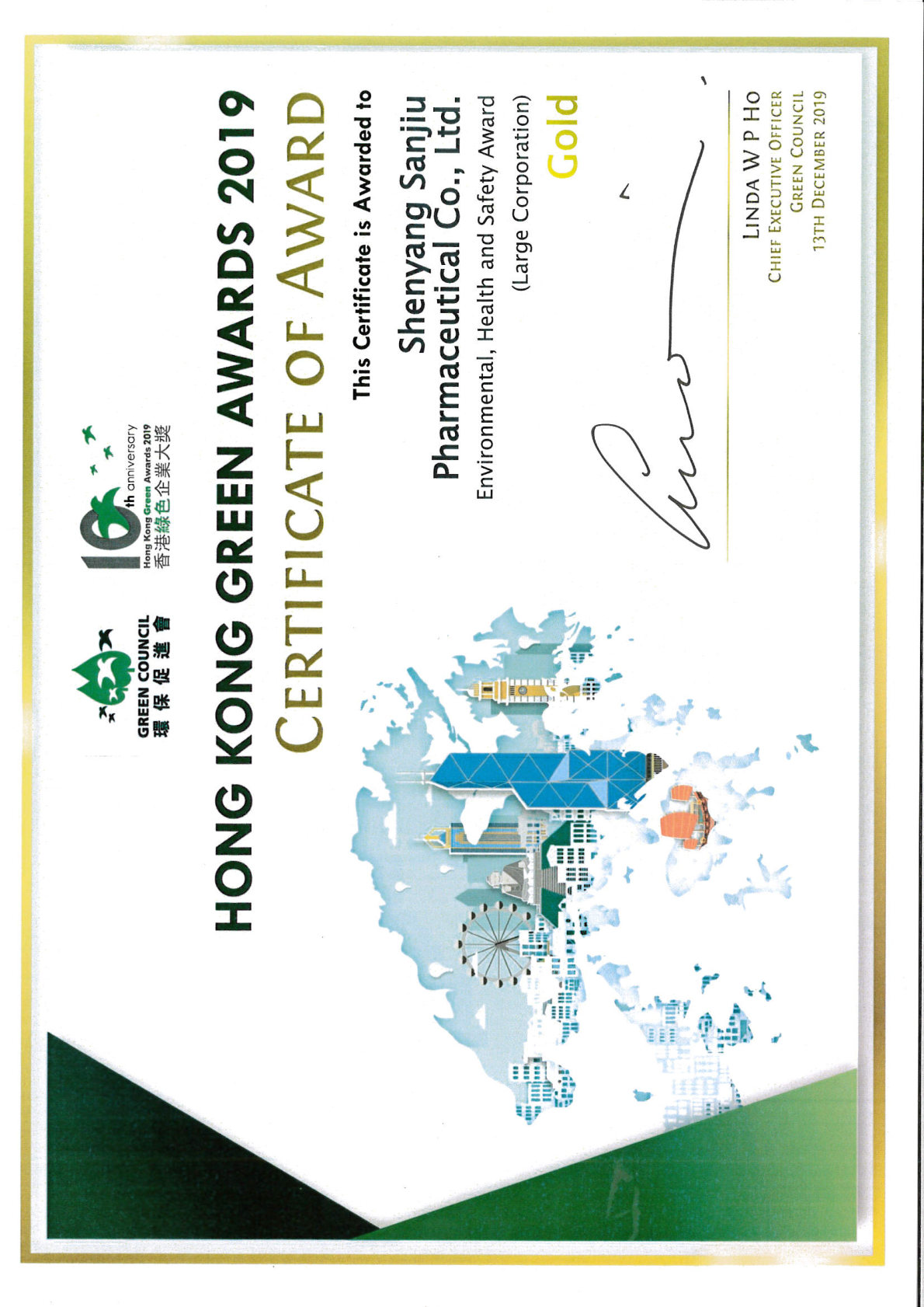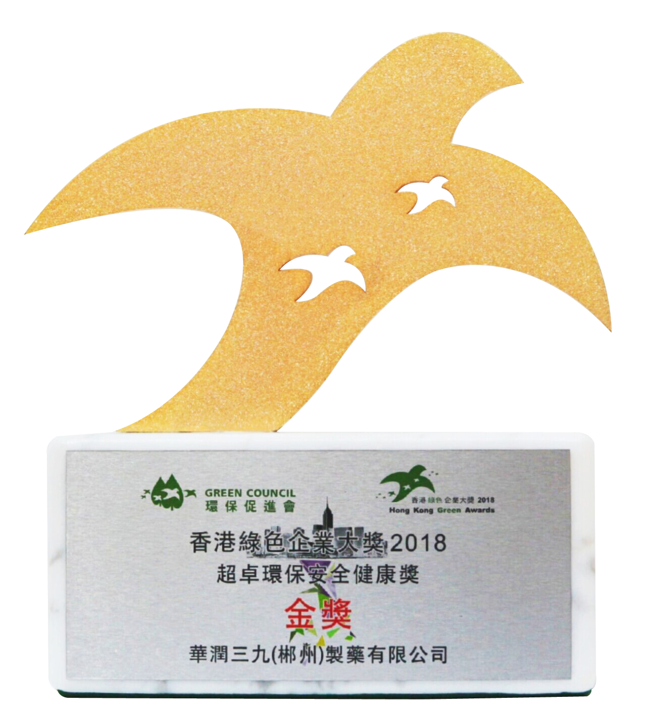 2019年12月,沈阳三九荣获香港环保促进会“香港绿色企业大奖-超卓环保安全健康奖”金奖。