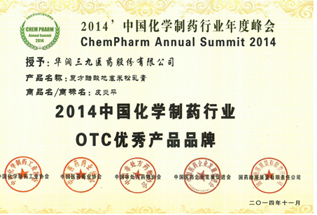 复方醋酸地塞米松乳膏(商品名:皮炎平)荣获“2014中国化学制药行业OTC优秀产品品牌”。此前,该产品先后荣获“深圳市科学技术进步二等奖”、“国家重点新产品”、“2007—2008年度店员推荐率最高品牌”、“2008年中国药品品牌榜上榜品牌”等多个奖项。