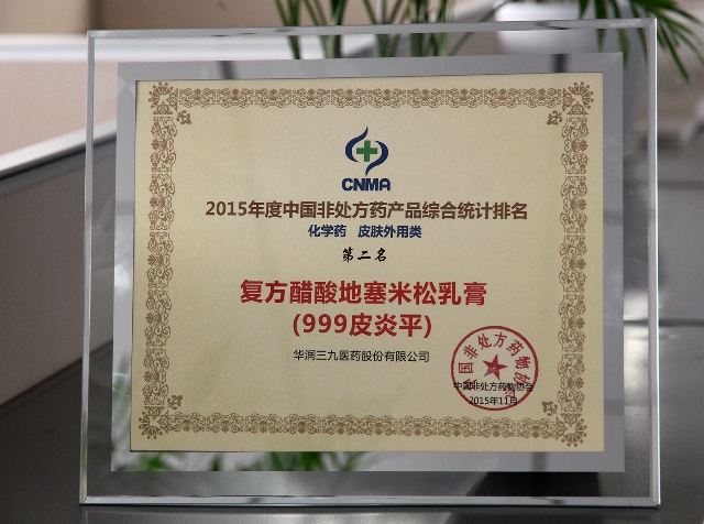荣获企业综合榜第一名;在非处方药产品统计排名方面,999感冒灵获中成药感冒咳嗽类第一名,999皮炎平获化药皮肤外用类第二名,正天丸获中成药头痛失眠类第二名,三九胃泰获中成药消化类第四名,骨通贴膏获中成药外用类第四名,999小儿感冒颗粒获中成药儿科类第三名,999小儿氨酚黄那敏颗粒获化药儿科类第四名。 (曾福)
