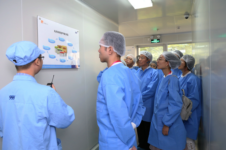 “六星级工厂”的观澜基地,深入丸剂、颗粒剂等车间生产一线,了解药品制造的产能、工艺、工序、流程,以及产品质量控制、安全环保措施等情况。