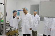 在总经理丁瑜总和生产总监王志敏的陪同下,宋清总裁一行实地参观了我司制剂、提取、软膏生产线,丁瑜总向宋清总裁详细介绍了公司近二年车间技改工程情况及取得的成效,尤其是提取车间节能降耗和工序优化项目、制剂车间软胶囊设备、制剂车间糖浆、口服溶液改造项目等。