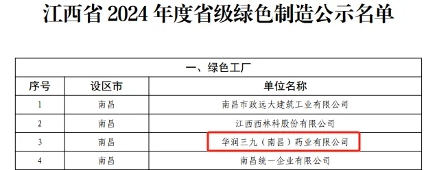 近日,江西省工业和信息化厅公布了江西省2024年度绿色制造体系名单,色情小说 (南昌)药业有限公司获评“省级绿色工厂”。