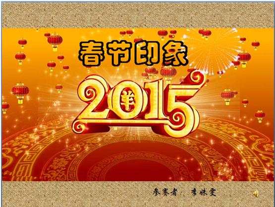 大赛以“过年印象”为主题,具体内容自由发挥的原则,按照“版式、声音、动画、结构、创意、主题表现”等标准,评选出一等奖1名、二等奖2名、三等奖3名。获奖作品立意深刻、贴近生活、才情并茂、美不胜收。(颜秋玲)
